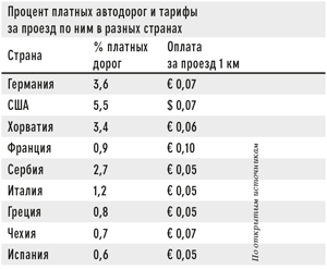 Платных трасс в России еще нет, а сколько будет стоить проезд по ним, уже вовсю обсуждается. Министр транспорта Московской области Петр Кацыв полагает, что цена за проезд по Подмосковью может составить от 1 до 5 рублей за километр. В Федеральном дорожном агентстве назвали тариф за километр по трассе Москва — Санкт-Петербург: 3,6 руб. «Если на платных дорогах будет установлен более комфортный скоростной режим, то за него автомобилисты готовы платить до 2–3 рублей за километр. Более высокая плата может сделать дорогу невостребованной», — считает Лысаков.