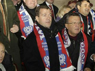 В первом стыковом матче, который состоялся на московском стадионе "Лужники" 14 ноября, россияне победили 2:1. Президент в это время находился в Сингапуре, однако, несмотря на то, что по местному времени матч начался после полуночи, досмотрел его до конца. Глава государства остался доволен игрой, однако отметил, что для победы во втором матче сборной России потребуется приложить все усилия. Поражение со счетом 0:1 или с разницей в два мяча может лишить их путевки в ЮАР.
