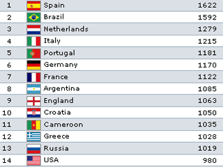 В первой десятке самого серьезного прогресса добилась команда Португалии, шагнувшая с 10-го места сразу на 5-е. Команда Украины, которая, как и Россия, не смогла пробиться на ЧМ-2010, опустилась с 22-й позиции на 24-ю.