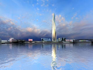 Напомним, на Охте, напротив Смольного собора, планируется строительство общественно-делового района, главным элементом которого станет здание высотой 396 метров. Предполагается, что полностью строительство "Охта-центра" будет завершено к 2016 году.