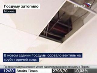 "В 01:00 ночи во вторник под напором воды сорвало вентиль, и вода хлынула с пятого этажа на нижние этажи; повреждено техническое оборудование, с помощью которого идет подсчет голосов при электронном голосовании в зале пленарных заседаний", - сообщили представители технической службы. Непосредственно под местом прорыва находятся помещения с оборудованием, отвечающим за систему подсчета голосов и обеспечение звуком пленарного заседания, уточнили сотрудники техслужбы.