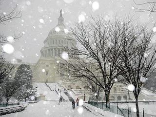 Другие аэропорты вокруг столицы США - Даллес и аэропорт Балтимора, аэропорт Нью-Арк также отменили многие рейсы. Общественный транспорт работает нерегулярно, однако непогода не смогла заставить американский сенат прервать обсуждение реформы здравоохранения.