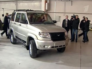 Автомобиль УАЗ производится новым автозаводом "Соллерс" на Дальнем Востоке России. Российский премьер-министр Владимир Путин проговорился о предоставлении скидки Берлускони, опробовав одну из первых автомашин, произведенных на заводе во Владивостоке.
