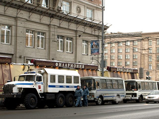 Как передает "Интерфакс", после многократных предупреждений сотрудников милиции собравшимся о незаконном нахождении на Триумфальной площади и их отказа подчиниться и разойтись, милиция начала задерживать участников акции.