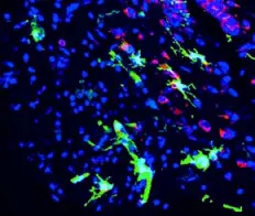 В серии экспериментов, проводившихся в том же университете под руководством постдока Дженифера Фелгера (Jennifer Felger) в сотрудничестве с медицинским колледжем Weill Cornell, исследовалось поведение дендритных клеток мозга, меченных флуоресцентным белком, после инсульта, вызванного у подопытных мышей. Оказалось, что они ведут себя иначе, нежели дендритные клетки вне мозга: они выстроились по периметру зоны поражения, формируя барьер между пораженной и здоровой тканью.