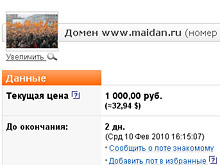 Доменное имя maidan.ru выставлено на продажу в день проведения второго тура выборов президента Украины на крупнейшем российском интернет-аукционе molotok.ru.