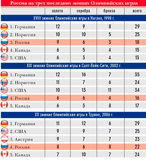 Таких хилых позиций у России не было ни перед одной Олимпиадой. Даже на предотъездном исполкоме Олимпийского комитета отдельного разговора с высшими чиновниками заслужили представители только четырех федераций: лыжных гонок, биатлона, фигурного катания и хоккея. Это те дисциплины, где мы можем реально ожидать золота. Остальные — в одиннадцати видах! — едут в лучшем случае за какой-нибудь шальной бронзой, но в основном кто в шестерку собирается попасть, кто в десятку грозится войти... Не очень, правда, понятно, какой вообще смысл в стремлении к этим позициям за пьедесталом, если зачет все равно ведется исключительно по медалям. Вы можете стать рекордсменами Игр по, скажем, четвертым местам, но в глазах победителей это будет не больше чем поводом для соболезнований.
