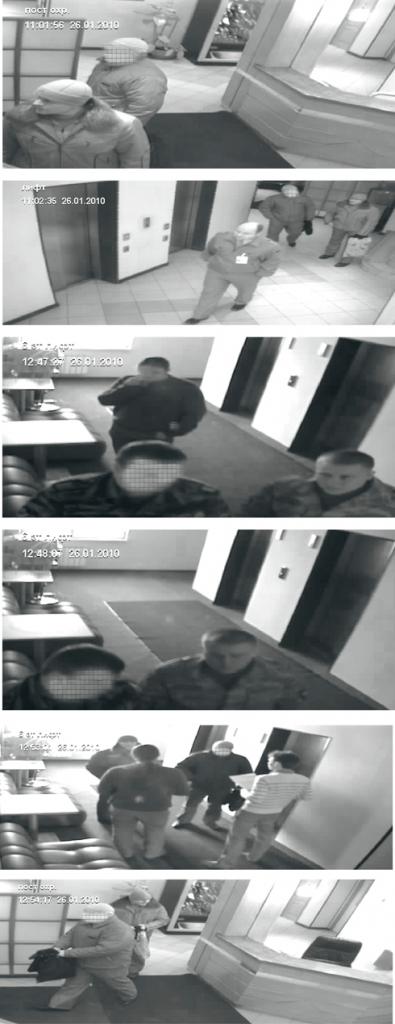 26 января 2010 года. В 11:01 сержант Сергей Таран и прапорщик NN вошли в здание, где расположена редакция The New Times (съемка камер наблюдения)