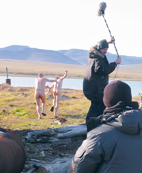 Просто так медведь на человека не пойдет — только если к концу лета он голоден. У нас, слава богу, снимались опытные медведи, они явной опасности не представляли. Просто шли своей дорогой мимо барака, собаки на них лаяли, они шипели в ответ — и все. Хотя под конец съемок был один неприятный инцидент. Мы с оператором Павлом Костомаровым уехали за 12 километров от основной базы и поселились в охотничьем домике, чтобы поснимать рассветы и закаты. И там нас осадил медведь-подросток, полный беспредельщик. Он был худой, лето явно кончалось, и инстинкт говорил ему, что надо хватать уже кого ни попадя. Он лез к нам в окно, подкарауливал нас ночью. На третьи сутки мы его отогнали в тундру с помощью факелов.