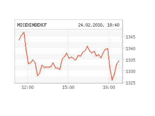 К закрытию торгов индекс РТС составил 1401,48 пункта (-1,52%), индекс ММВБ - 1334,53 пункта (-1,42%), стоимость большинства основных "фишек" снизилась на биржах на 0,3-4%.