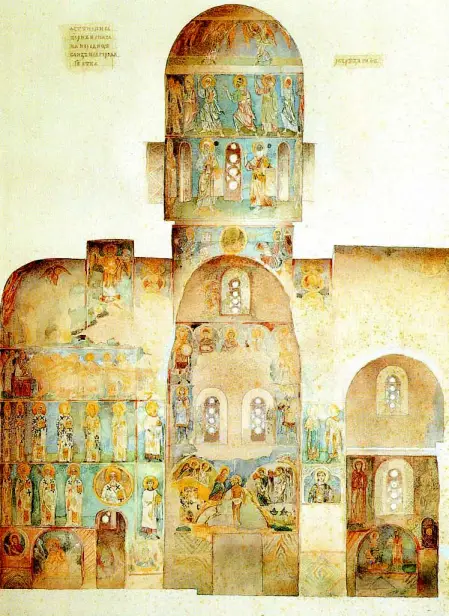 В результате от церкви сохранилась только восточная часть — апсиды и небольшие куски северной и южной стены. Практически все росписи были утрачены. Хорошо, что до войны фрески активно изучались, и по крайней мере копии всех их доступны для анализа.