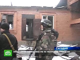 ФСБ во взаимодействии со Следственным комитетом при прокуратуре РФ продолжает оперативно-следственные мероприятия. Ранее в субботу о проведенной в Ингушетии спецоперации директор ФСБ Александр Бортников доложил президенту России Дмитрию Медведеву.