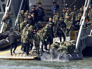 Водолазам пока не удалось обнаружить кого-либо в живых в кормовой части затонувшего корвета "Чхонан" (Cheonan), который затонул 26 марта при неясных обстоятельствах в районе границы с КНДР. А в носовой части найти кого-то из 46 пропавших членов экипажа маловероятно, считают специалисты.