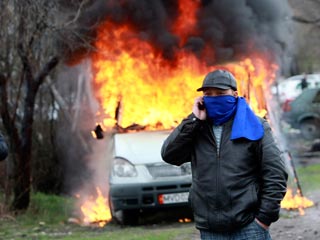 Ночью полностью сгорело здание Генпрокуратуры. Оно, видимо, также разграблено. Около 100 человек собрались у дома президента Киргизии Курманбека Бакиева, который был разграблен и сожжен накануне.