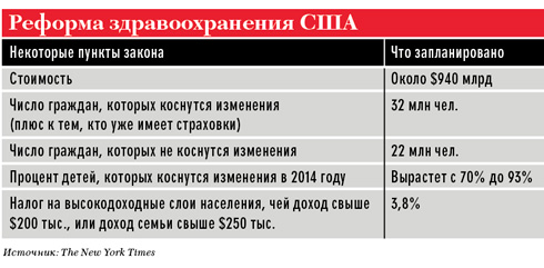 Полагаю, что противники реформы будут стараться изменить заложенные в законе нормы. И самые жаркие дебаты будут происходить вокруг того, кто должен ее оплачивать. Закон предлагает финансировать реформу за счет увеличения налогов на доходы самых богатых слоев населения и крупных компаний.* * С 2013 года американцы, чей ежегодный доход превышает $200 тыс., будут платить дополнительные 3,8% налога на доход, полученный нетрудовым путем (дивиденды, прирост акционерного и иного капитала, вклады в банках). Однако представители крупного бизнеса и самых богатых слоев населения имеют большой вес в Конгрессе, поэтому у них есть реальные возможности для того, чтобы скорректировать закон и перенести эти издержки на плечи других социальных групп. Поэтому я ожидаю, что в течение последующих десятилетий в обществе развернется новая дискуссия вокруг финансирования системы здравоохранения.