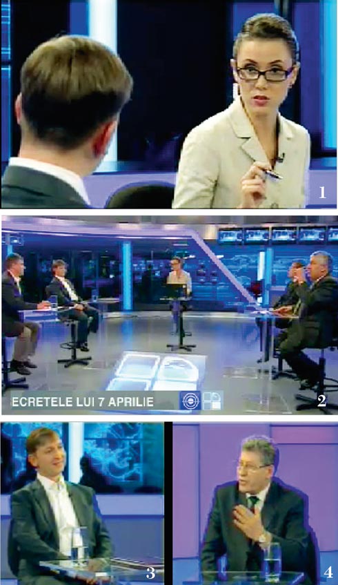 ![]() | Ведущая политического ток-шоу «Фабрика» Наталья Морарь (1) вышла в эфир (2) в годовщину революции. На ее вопросы отвечали бывший глава Службы информационной безопасности Молдовы Антон Решетников (3) и и.о. президента страны Михай Гимпу (4) |