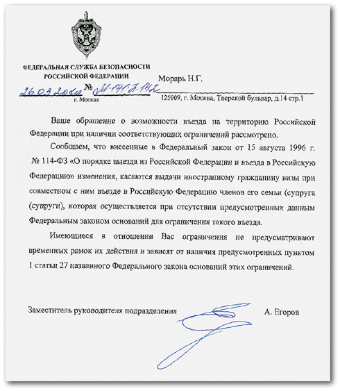 P.S. 6 апреля в редакцию The New Times в ответ на очередной запрос о том, когда Наталье Морарь будет открыт въезд в Россию, пришел очередной ответ из ФСБ, смысл которого — никогда: «Имеющиеся в отношении Вас (Натальи Морарь. — The New Times) ограничения не предусматривают временных рамок их действия». «Ограничения» — это все та же статья 27 п.1 Федерального закона «О порядке въезда и выезда», согласно которой журналист Морарь представляет угрозу обороноспособности, национальной безопасности и здоровью граждан РФ.