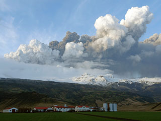Извержение вулкана Эйяфьятлайокудль в 200 километрах к востоку от столицы Исландии Рейкьявика началось 14 апреля. В атмосферу было выброшено огромное облако пепла, что привело к закрытию воздушного пространства над значительной частью Европы.