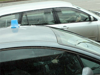 "Общество синих ведерок" — стихийное движение автомобилистов, прикрепляющих на крыши своих авто детские ведерки в знак протеста против засилья мигалок на дорогах.