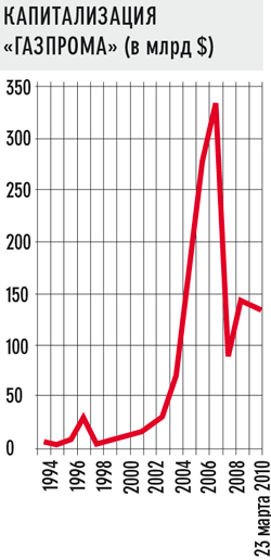 * * Более свежей статистики «Газпром» пока не обнародовал. общий долг концерна вплотную приблизился к $60 млрд, а чистый (за вычетом остатков наличности на счетах) составляет рекордные $49 млрд. Капитализация российской газовой монополии, по данным агентства Bloomberg, за последние два года упала в 2,5 раза: теперь ее активы оцениваются в $144,87 млрд (32-е место в списке крупнейших по капитализации компаний мира).