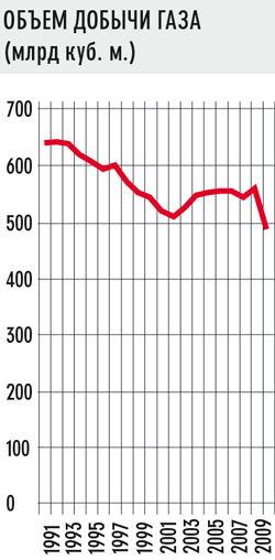 «Газпром» пережил падение практически по всем параметрам. По предварительным данным, компания добыла в 2009 году 462 млрд кубометров газа — на 87 млрд кубометров (почти 16%) меньше, чем за год до этого. Ситуация с продажами на внешних рынках тоже оказалась драматичной. «Газпрому» удалось продать в Европе и других странах дальнего зарубежья 140 млрд кубометров газа — на 20 млрд кубометров меньше, чем в 2008-м.