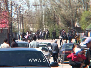 Сотрудники МВД Киргизии блокировали автодорогу из села Маевка в Бишкек, откуда в город пыталась прорваться толпа. На месте находятся сотрудники милиции и военнослужащие внутренних войск, экипированные бронежилетами и касками. Дорога в Бишкек вдоль всей трассы контролируется патрульными милицейскими автомашинами.