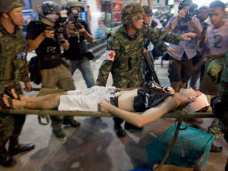 По данным полиции, в центре города находятся порядка 60 тысяч "краснорубашечников", которые продолжают требовать от главы правительства Абхисита Ветчачивы распустить парламент. Они занимают всю проезжую часть улицы Ратчапрасонг, а также часть улиц Пратунам и Рама 1, блокируют ряд магистралей. Их лагерь площадью 3 квадратных километра забаррикадирован автомобилями, покрышками и острыми бамбуковыми палками.