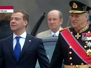 Президент России Дмитрий Медведев с супругой прибыл с официальным визитом в Норвегию. В аэропорту Осло президентскую чету встречал крон-принц Хокон, а на Дворцовой площади, где их ожидали король Норвегии Харальд Пятый, королева Соня и крон-принцесса Метте-Марит, российский лидер появился под пушечный салют и военный оркестр, сообщает РИА "Новости".