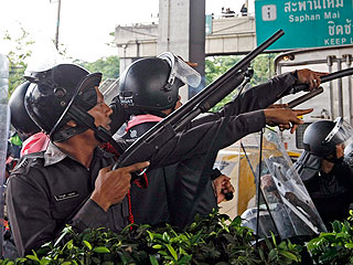 Под градом резиновых пуль оппозиционеры отступили, успев запустить по вертолетам самодельные ракеты "банг фаи", сообщает местный телеканал MCOT. Их оттеснили сотни солдат и полицейских.