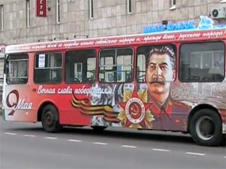 Утром 5 мая по Невскому проспекту Санкт-Петербурга начал курсировать автобус с размещенными на его бортах портретами Сталина, сообщает "Фонтанка.ру". Портрет "вождя народов" разместили на борту автобуса маршрута К-187, принадлежащего ООО "Сеть пассажирских перевозок". Этот перевозчик известен тем, что имеет застарелый конфликт со Смольным, не имеет договора с Комитетом по транспорту и является фактически банкротом, что совершенно не мешает автобусам под их маркой уже который год ездить по главной магистрали города. Корреспонденты "Фонтанки" решили выяснить, почему именно там и как к этому относятся в обществе.