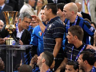 Наставник миланского "Интера" Жозе Моуринью не скрывал своей огромной радости после победы над "Ромой" со счетом 1:0 в финальном матче Кубка Италии.