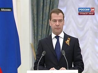 Поздравляя награжденных, Медведев подчеркнул, что за 65 лет, прошедших со времени одержанной Победы, мир изменился. "Наш народ дал возможность другим народам и сохранил эту возможность для себя развиваться свободно, свободно жить, продвинуть нашу науку, совершать открытия, развивать мировую, национальную культуру", - сказал президент.