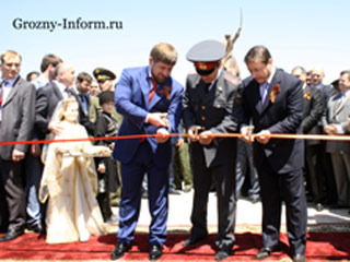 В Грозном в субботу состоялось открытие мемориального комплекса Славы. В торжественной церемонии приняли участие полпред президента РФ в Северокавказском федеральном округе Александр Хлопонин, президент Чеченской республики Рамзан Кадыров, послы и представители более десяти иностранных государств, члены Совета Федерации РФ, депутаты Госдумы, главы субъектов СКФО, делегация республики Абхазия, ветераны Великой отечественной войны.