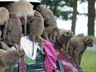 Реальной угрозой для иностранных болельщиков на предстоящем чемпионате мира по футболу в ЮАР могут стать бабуины. Уже сейчас невероятно сильные и ушлые приматы наводят страх на пропускной пункт Бейтбридж на границе с Зимбабве, "освобождая" проезжающих от продуктов, когда те раскладывают чемоданы и открывают их для досмотра таможенниками, передает телеканал "Вести".
