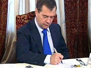 В пресс-службе также отмечают, что Медведев подписал закон, который увеличивает на год - с четырех до пяти лет - сроки полномочий избиркомов всех уровней - Центризбиркома, избирательных комиссий субъектов РФ и комиссий в муниципальных образованиях.