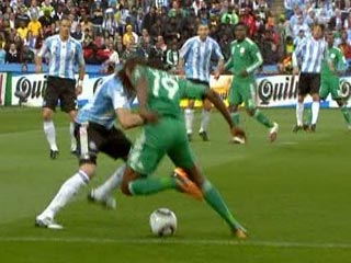 Сначала после паса Месси умудрился с близкого расстояния промахнуться Иугаин, затем после великолепного удара Лионеля Нигерию спас голкипер, но с третьей попытки Хайнце все-таки отправил мяч в сетку ворот.