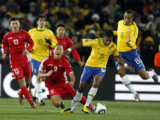 Сборная Бразилии победно стартовала на чемпионате мира в ЮАР, одолев в матче первого тура группового этапа неуступчивую команду КНДР со счетом 2:1. Несмотря на огромную разницу в классе, пентакампеоны не без труда набрали три очка - им пришлось изрядно понервничать в концовке встречи.
