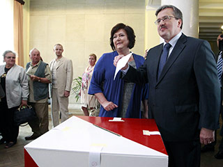 Исполняющий обязанности президента Польши, спикер Сейма Польши Коморовский с супругой также традиционно проголосовали в Варшаве, на участке, расположенном в здании Второго общеобразовательного лицея имени Стефана Батория.