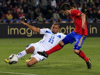 Сборная Испании одержала первую победу на чемпионате мира по футболу, переиграв в понедельник в матче второго группового этапа команду Гондураса со счетом 2:0. Оба мяча в этой встрече забил Давид Вилья, который имел все шансы оформить хет-трик, но не реализовал пенальти.