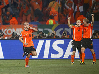 Решающий гол тоже вышел курьезным: после навеса с углового в исполнении Арьена Роббена и передачи Дирка Кайта на дальнюю штангу 170-сантиметровый Уэсли Снейдер, которого упустил все тот же Мело, головой переправил мяч в сетку.