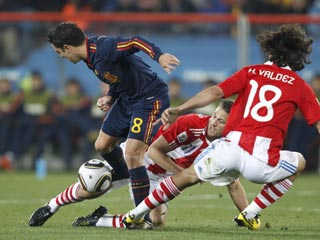 Футболисты сборной Испании, переиграв со счетом 1:0 команду Парагвая, стали последними полуфиналистами мирового первенства. Единственный мяч в матче забил Давид Вилья.