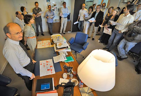 Эрик Фотторино (слева) собирает утреннюю летучку в «Монд»