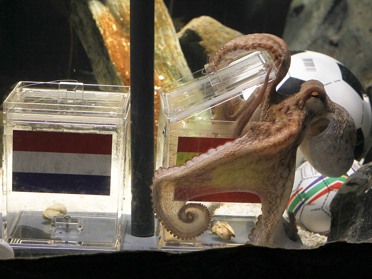 Не исключено, что на мнение букмекеров повлиял знаменитый осьминог Пауль. Сегодня он тоже предрек победу командам Германии и Испании. Ясновидящий обитатель океанариума немецкого города Оберхаузен прославился на весь мир благодаря тому, что угадал результаты всех матчей с участием сборной ФРГ на нынешнем чемпионате. Российские букмекеры уже подсчитали, что Пауль заработал бы на своих предсказаниях миллион евро, если бы мог играть на тотализаторе. Но осьминог делает ставки по более простой схеме: в его в аквариум опускают два прозрачных контейнера с кормом, на которых наклеены флаги Германии и ее очередного соперника. Считается, что победит команда, чей контейнер Пауль опустошит первым. Его прогнозы в этом году всякий раз оказывались безошибочными (4 победы и 2 поражения), а на последнем чемпионате Европы он допустил лишь один промах.