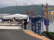 В программу подготовки Владивостока к саммиту АТЭС включены более 40 строительных объектов. Более чем на десяти из них строительно-монтажные работы ведутся уже от нескольких месяцев до полутора лет. Активно идет возведение двух мостов - через бухту Золотой Рог и через пролив Босфор Восточный на остров Русский.