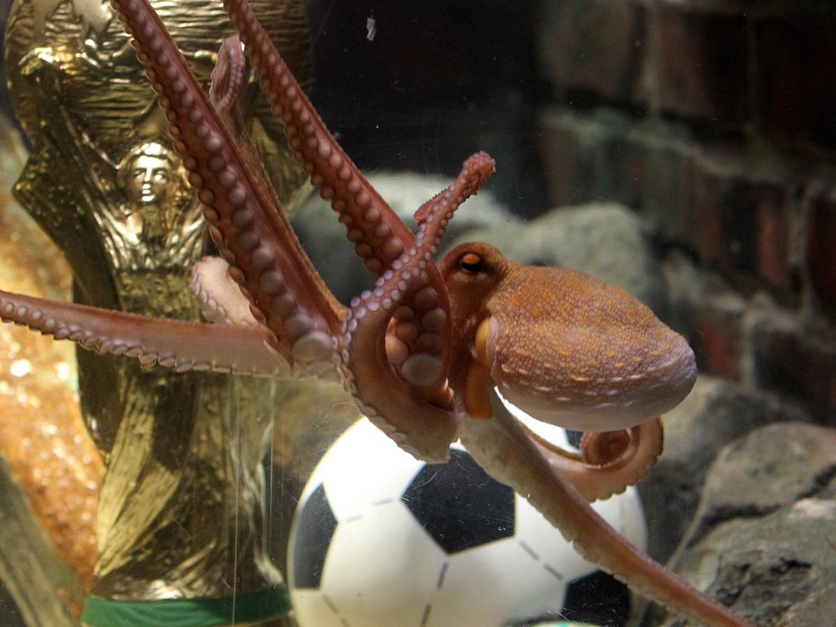 ..."Неслыханно!", "Сенсационно!", "Превосходно!"... Немецкая пресса не скупится на эпитеты, говоря об осьминоге Пауле из океанариума Sea Life. Если во время чемпионата Европы по футболу в 2008 году Пауль угадал верно исход лишь четырех из шести матчей с участием сборной Германии, то на этот раз результат был стопроцентно безошибочным: итог семи матчей немецкой команды, а также финала первенства, предсказан верно.