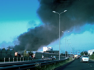 Крупный пожар на рынке в Риге, пострадавших нет