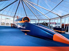Через три года кропотливой работы британские инженеры завершили работу над самым быстрым колесным транспортным средством на планете - сверхзвуковым автомобилем Bloodhound. Концепт, оснащенный супермощным реактивным двигателем, был продемонстрирован широкой публике на международном авиасалоне в английском местечке Фарнборо, открывшемся в понедельник.