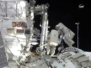 По словам представителя ЦУП, после установки телекамеры Юрчихин и Корниенко завершили работы по вводу в состав станции российского модуля "Рассвет", который был доставлен в мае американским шаттлом Atlantis и пристыкован к функционально-грузовому блоку "Заря".