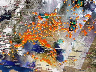Согласно данным на воскресенье, полученным для европейской части России, Урала и Западной Сибири, общее число "горячих точек" составило 380, больше всего их было зафиксировано в регионах Нижнего Поволжья, юга и центра России.