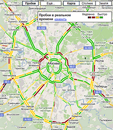 Компания Google сообщила о запуске информационного сервиса для российских пользователей, позволяющего в реальном времени получить данные о пробках в крупнейших российских городах. Пока сервис работает только для Москвы и Санкт-Петербурга, но в будущем планируется его запуск и для других крупных российских городов, сообщает РИА "Новости".